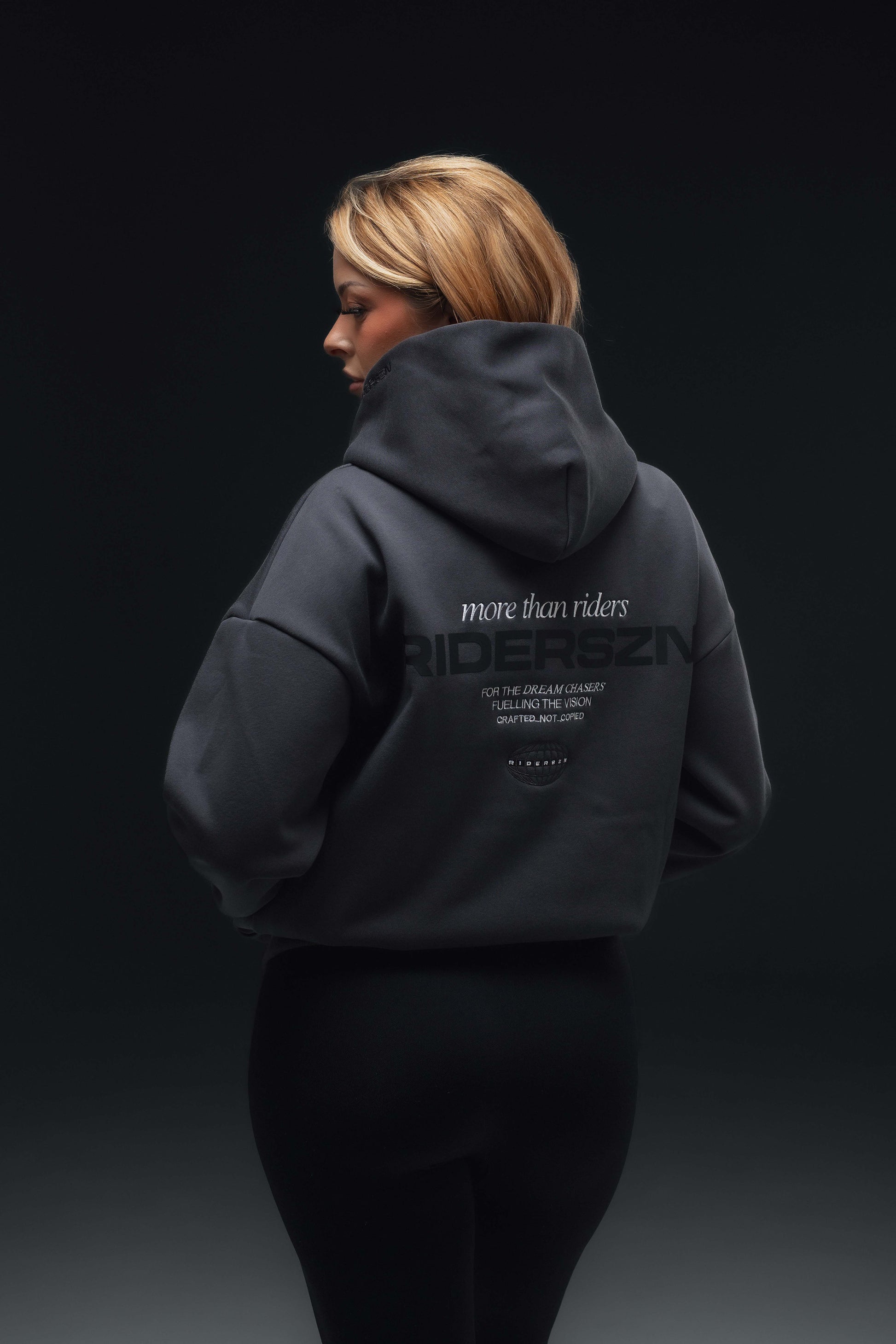 The RiderSZN Classic design features a clean logo print on the chest, paired with a mix of printed and embroidered details on the back. Subtle embroidery on the sleeve and hood adds texture without taking over.