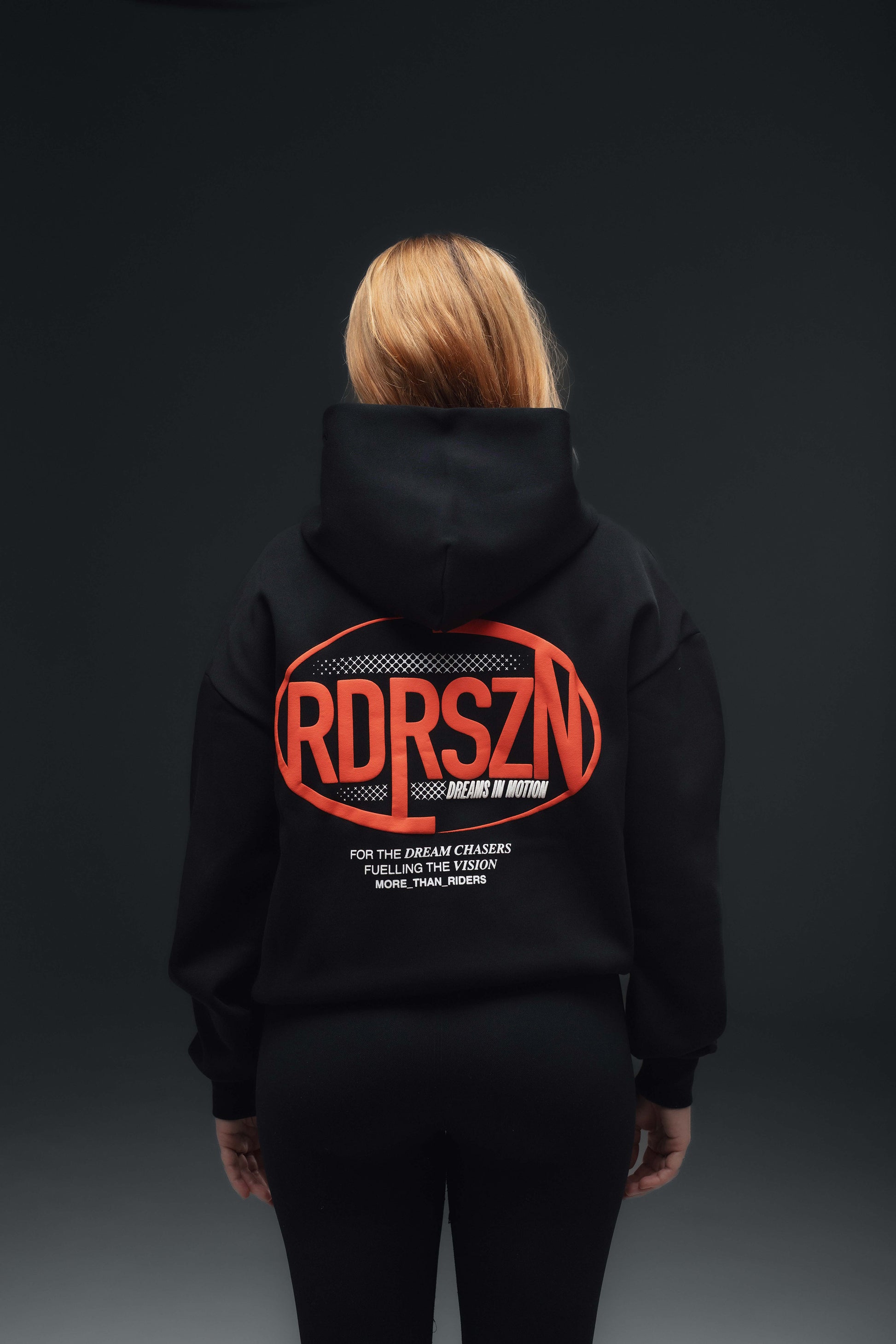 The 'Dreams in Motion' Design features a puff printed elements on the front and back, with subtle embroidered details on the sleeve and hood.